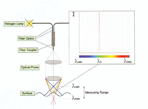 透镜中心厚度检测是透镜生产中的一个重要环节,传统的方法是采用接触式测量法,这种检测法精 度低、耗时长、容易划伤透镜并且无法实现实时在线测量。而另外一种非接触式测量采用光学原理-色差共焦原理可以避免上面的问题,其检测结果更为精确。可靠,由于整个系统没有任何运动部件非接触式测量,在检测结果可靠性和稳定性方面,更为出色;同时由于采用了AvaSpec-ULS2048高速光谱仪,非常适合各种光学领域透镜的中心厚度在线检测。