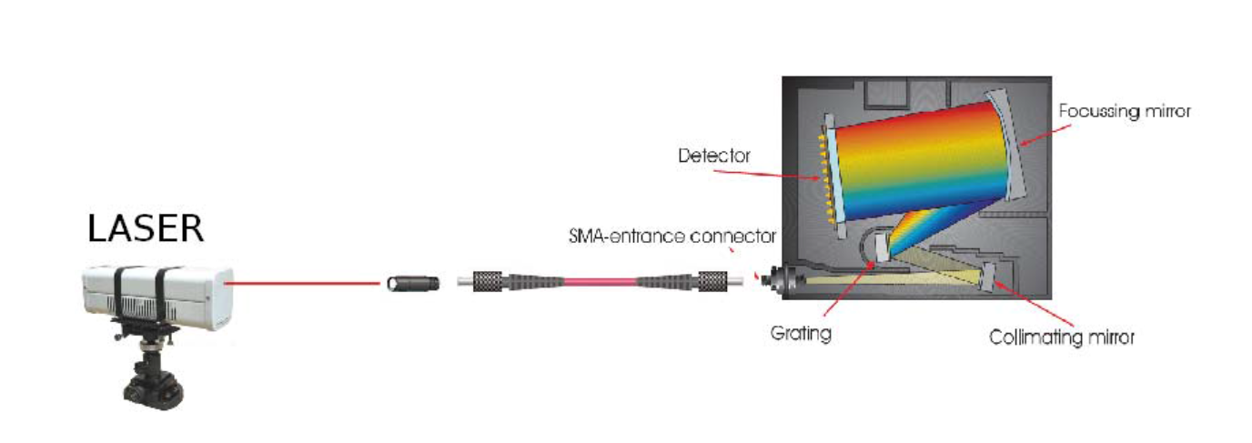 本文以荷兰Avantes公司的微型光纤光谱仪AvaSpec-ULS4096CL-EVO为例,介绍微型光谱仪在测量激光波长方面的应用。AvaSpec-ULS4096CL-EVO高分辨率光谱仪非常适合测量连续和脉冲激光的波长和相对强度,而且由于探测器具有9微秒的电子快门功能,因此动态范围非常大。对于高功率激光,可选用积分球或余弦校正器来衰减入射光,以避免探测器饱和。