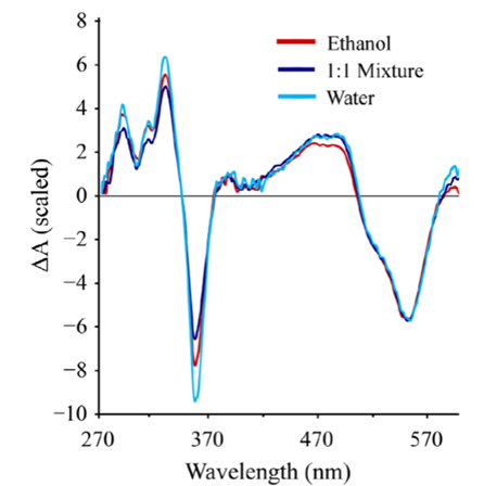 另外一个有意思的应用是密歇根大学(the University of Michigan)发表的关于氰钴胺激发态在生物系统中的作用[3]。如图6所示,他们使用Avantes的光谱仪测试不同溶剂对电子跃迁的影响。研究小组使用这些实验数据验证了他们研发的复杂量子力学模型的作用,并为进一步研究可以用作作抗维生素、光活性药物传递剂和原位产生烃基自由基的钴胺素辅酶因子奠定了基础。