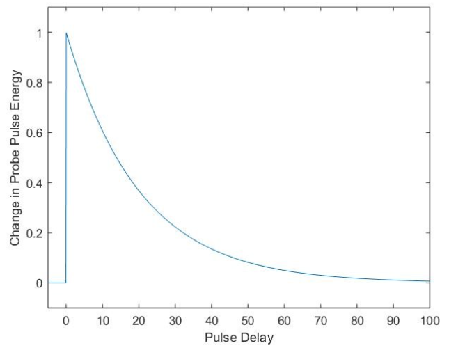 使用超快激光进行瞬态吸收光谱测试有许多不同的方法,基本上依据泵浦探针。该方法需要两束激光同时激发分析物并测量吸光度。首先,高强度的泵浦激光激发样品中的部分分子到更高的能级,从而改变了分子的居数差,降低了跃迁的吸收系数。然后,通过低强度的探针激光通测量样品吸收。通过计算有无泵浦激光时探针激光的吸收差值,就可以确定吸收的变化。然后根据泵浦脉冲与探针脉冲的不同延迟时间系统重复此过程,测量发射探针脉冲能量的变化,如图2所示。从这些数据,我们现在可以建立能级跃迁动力学的图像,并确定自发寿命和其他瞬态效应。