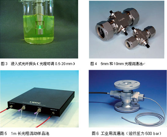 耐腐蚀型光纤探头可用于在线测量,探头末端浸入到液体中即可测量,光程可调(0.5-20mm)。